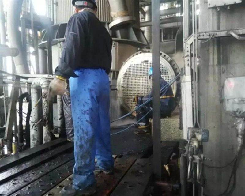 4、在对传热管进行清洗要时刻观察高压水的除垢能力,达到除垢要求后,就停止清洗水的增压工作,在移动高压管时要紧握住缓慢移动,可以对传热管进行反复清洗直到内部污垢全部脱落,然后进行减压排水对传热管进行逐根冲洗。
